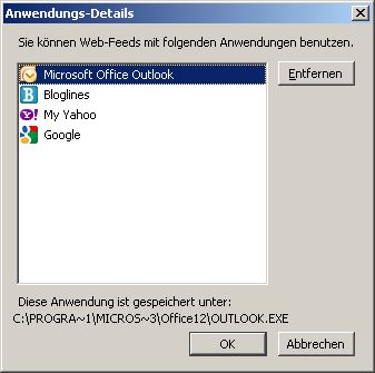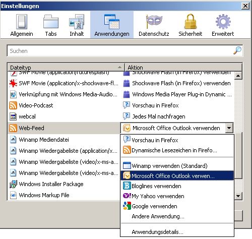 Extras / Einstellungen / Anwendungen / Webfeed