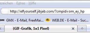 habe folgendes problem und zwar wenn ich einen link bei google oder in ner email anklicke kommt des öfteren ne leere seite und oben stehlt dann in klammer gif-grafik, 1x1 pixel wie zb bei elfyourself.com und andere habe mal nen screenshot hochgeladen