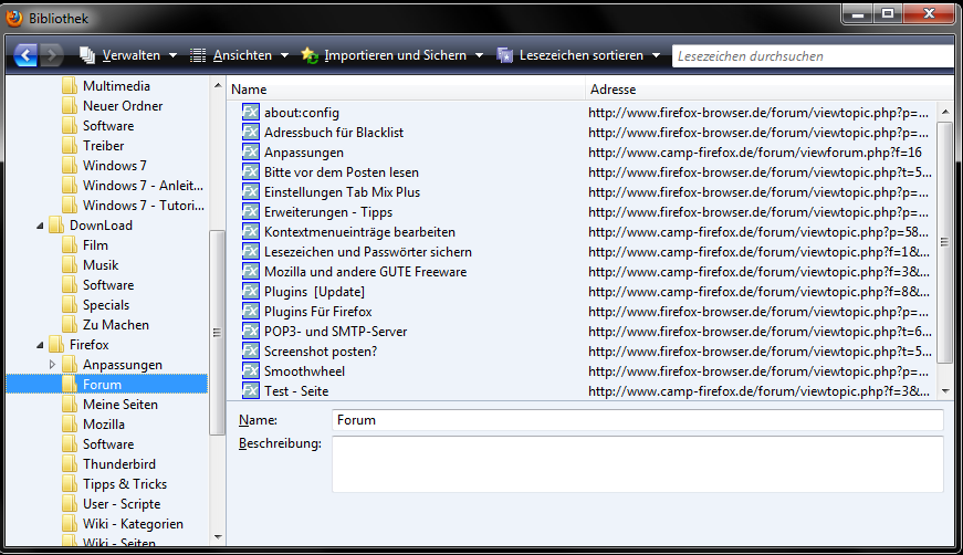 Hallo ich suche für den Mozila Firefox ein plugin mit dem ich die Lesezeeichen besser verwalten kann,so ist es ja das man alles in den Lesezeichen erstellen muss usw.Da nervt es das wenn man eine änderung gemacht hat die Lesezeichen immer wider zu gehen,gibt es da etwas für?