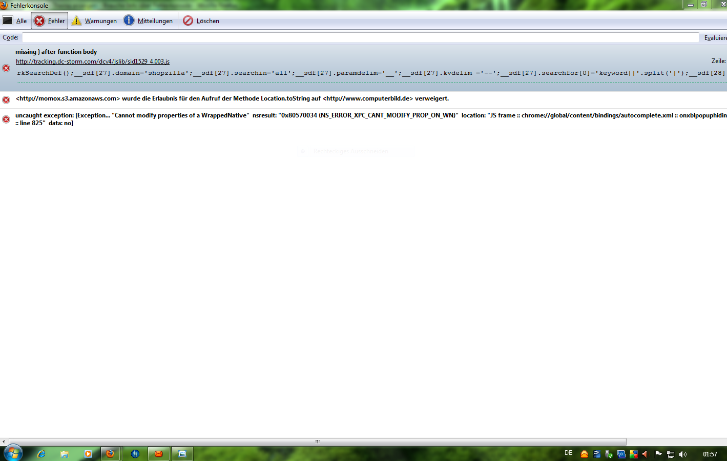 Jetzt habe ich mal etwas unter "Extras" gestöbert und bin auf die Fehlerkonsole aufmerksam geworden.