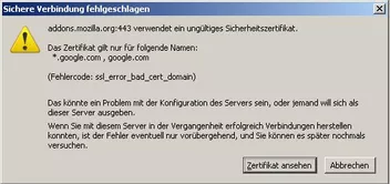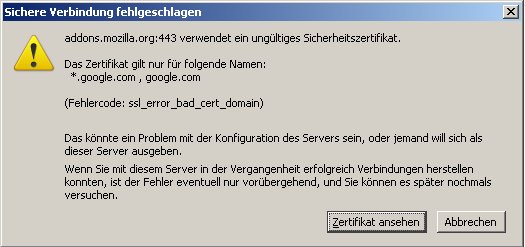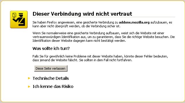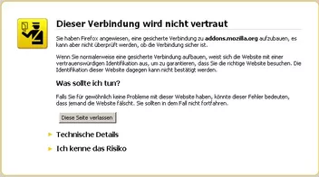 Trotz all dem immer die gleiche Fehlermeldung beim Download von Addons (FireFtp, Firebug, etc.)
