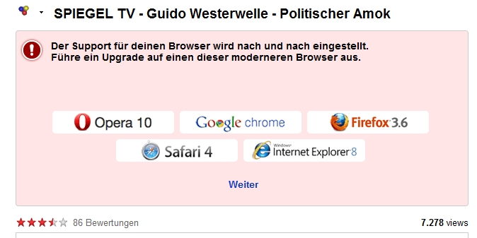 laut Youtube nutze ich keinen aktuellen FF, dem ist abe nicht so ich lasse die Updates regelmässig installieren und kann aktuell auch keine installieren da er aktuell ist. Ein ähnliches Problem hab ich bei IE8 und beim T-Online Browser, dort bekomm ich zwar keine Fehlermeldung seitens Youtube, dafür hab ich unter diesen Browsern keinen Ton und ein stottriges Bild. Aber erstmal zurück zum Fuchs. Zum besseren Verständnis hier zwei Bilder: