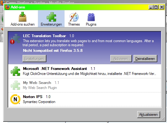 seit dem letzten Versionsupdate ist der LEC Translation toolbar nicht mehr kompatibel :-???