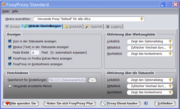 Falls Dich noch das Add-on FoxyProxy für den Firefox - bitte nicht in JonDoFox installieren! - interessiert,