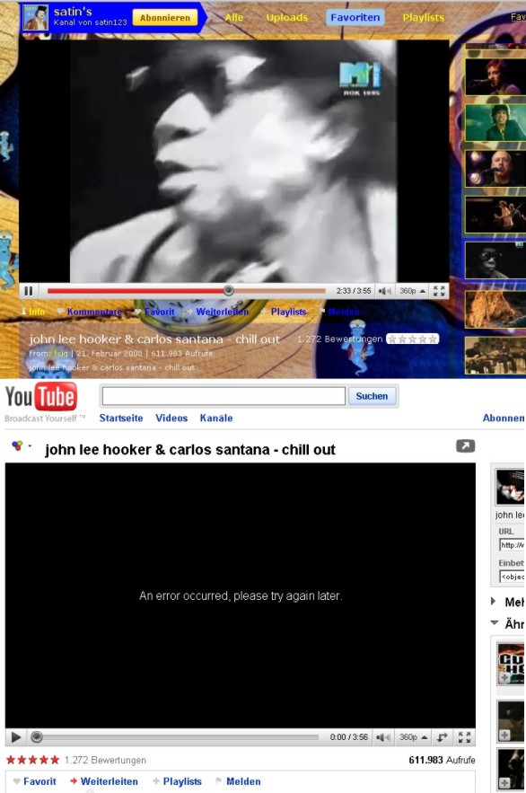 In Webseiten eingebettete Youtube Videos und auch die Videos in den Youtube Kanälen konnten fehlerfrei abgespiel werden jedoch nicht die Videos auf den normalen Videoseiten, etwa wenn man auch youtube.com geht und ein Video auf der Seite anklickt. Hier stand dann in dem Videofenster die Meldung "ein fehler ist aufgetreten versuchen sie es später erneut".