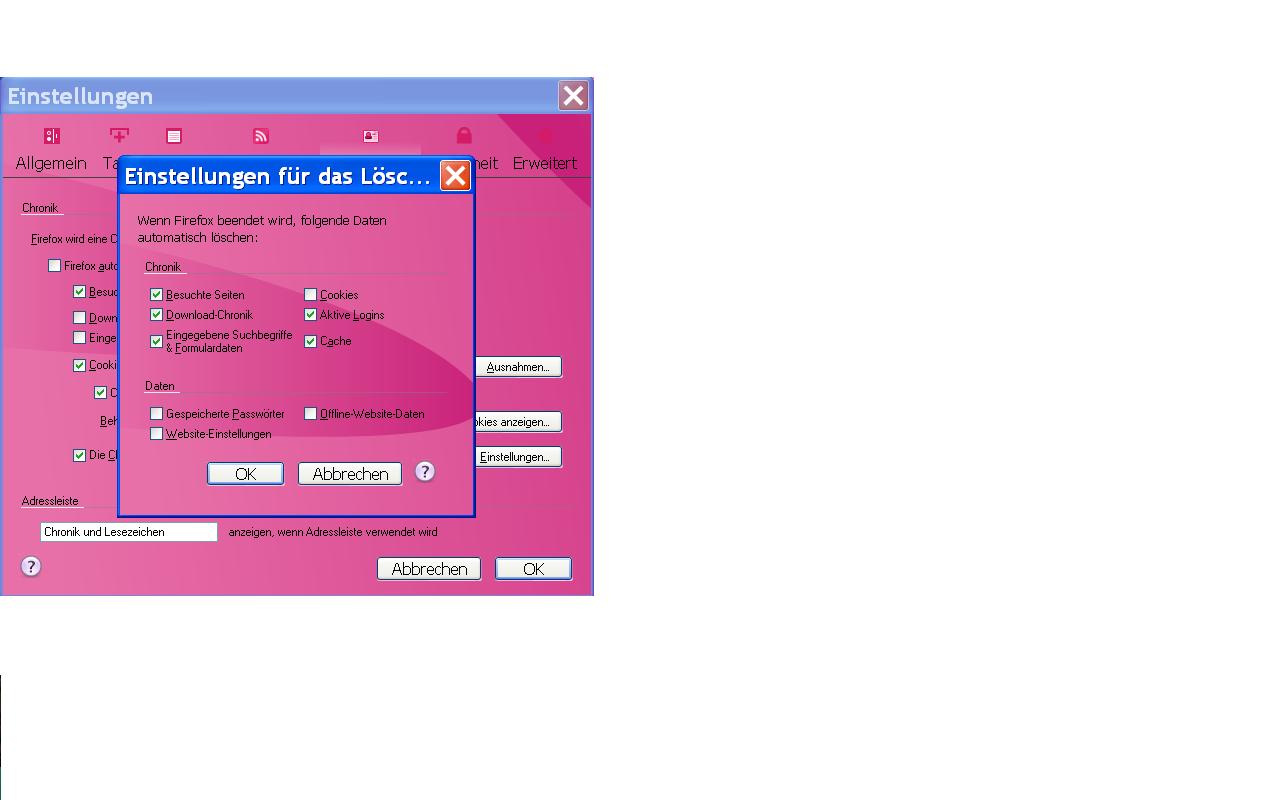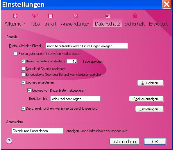 - Unter SICHERHEIT / DATENSCHUTZ UND CHRONIK steht unter 'Habe ich diese Seite früher schon einmal besucht?': NEIN