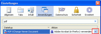 Im Fx schaue Dir unter "Extras->Einstellungen->Anwendungen" die gewählte Option für *pdf an: