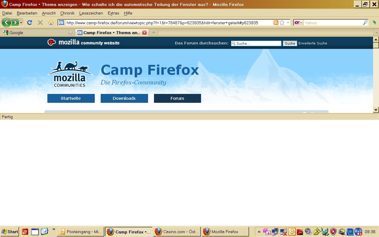Seit ein paar Tagen habe ich, sobald ich Mozilla Firefox starte, ein horizontal geteiltes Fenster (durch die Statusleiste getrennt).