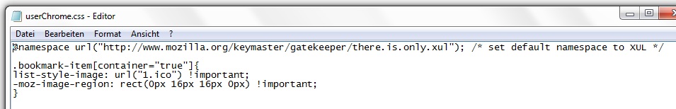 Dann nehme ich die userChrome-example, KOPIERE die z.B. in den Ordner Downloads. Dort UMBENENNEN ich den Ordner in userChrome.css. Dann lösche ich den aktuelle Text (so dass es leer ist) und kopiere: