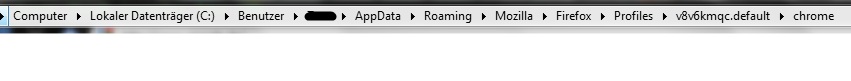 Ich SPEICHERE und KOPIERE den Ordner in C:/benutzer/benutzername/appdata(hab ich sichtbar gemacht)/roaming/mozilla/firefox/profiles/x8v6kmqc.defaults/chrome. Dort LASSE ich die beiden exampel-Ordner (userChrome-example u. userContext-example). Dann schließe ich den FF, öffne den erneut und es passiert ... NIX ![]()