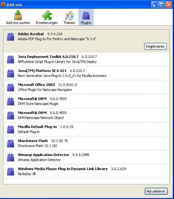 • Ein Klick auf Aktualisieren führt dich lediglich zum Plugin Check. Dort werden, sofern möglich, deine in Firefox eingebundenen Plugins auf ihre Aktualität überprüft.