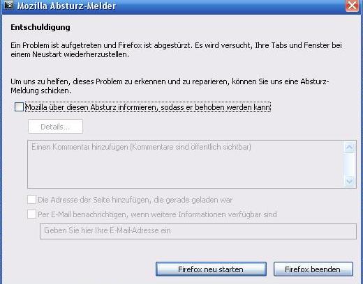 Die fehlermeldung habe ich als anhang hochgeladen. Diese meldung bekomme ich immer wenn mein firefox abstürzt. Wie gesagt..eine deinstallation hat nix gebracht.