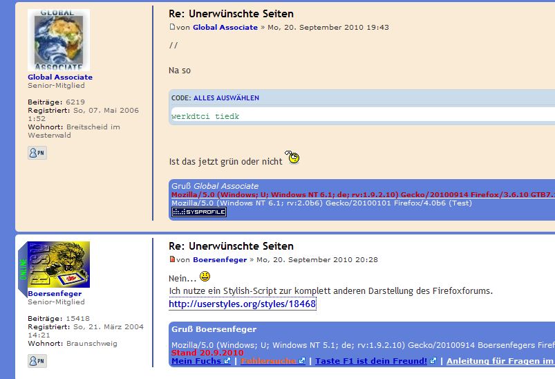Ich nutze ein Stylish-Script zur komplett anderen Darstellung des Firefoxforums.