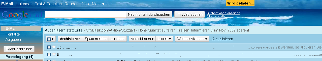 Versuchen Sie in der Zwischenzeit bitte, Ihre Cache und Cookies zu löschen, probieren Sie einen anderen Brwoser, oder nutzen Sie Google Mail über die Version einfaches HTML.Zitat von http://mail.google.com/support/bin/static.py?page=known_issues.csEinige Nutzer haben das Problem, dass Firefox beim Laden von Google Mail ständig aktualisiert. Wenn diese unendlichen Umleitungen durch den Browser bei Ihnen auftreten, melden Sie sich von unserer sicheren Website unter https://mail.google.com/mail aus an.