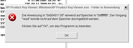 Absturzmeldung unter XPsp3. Noch nie gesehen? :) Hab grad im Netz so ein Bild gefunden (wohl ohne ClearType, also nicht erschrecken). Nur steht dann hier kein KeyViewer als ÜBerschrift, sondern eben plugin-container.exe. Und die "Zahlen" sind natürlich anders. Die Meldungen hab ich leider nicht abgeknipst. Dafür war der Novo zu schnell wieder runter.