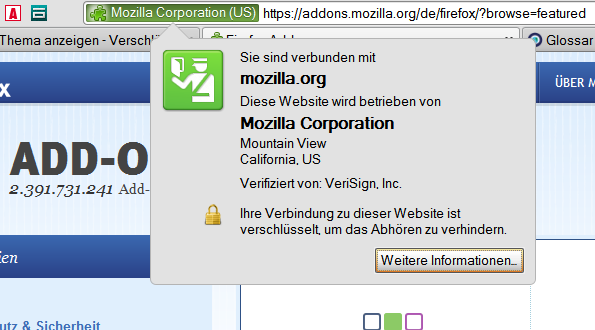 Ob eine Seite verschlüsselt erkennst du aber weiterhin am Farbfeld in der Adressleiste, dort wird auch Angezeigt für wen das Zertifikat ausgetellt wurde..
