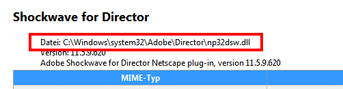 Gib nun about:plugins in die Adresszeile ein (+ Enter) und Du kannst in der Liste sehen, in welchem Verzeichnis diese Datei liegt.