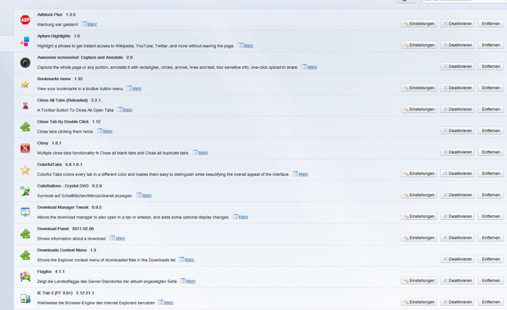 Ja, da hast Du recht, habe relativ viele Erweiterungen installiert (siehe Screenshots).