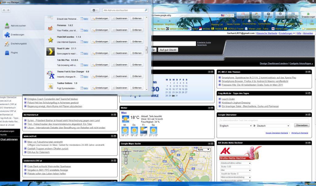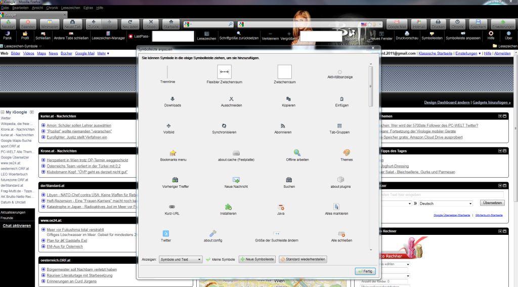 Ich möchte gerne ein Bildschirmfoto deinerseits, exakt so wie meines (mit geöffnetem Anpassen-Dialog), sehen! Beide Erweiterungen natürlich installiert!