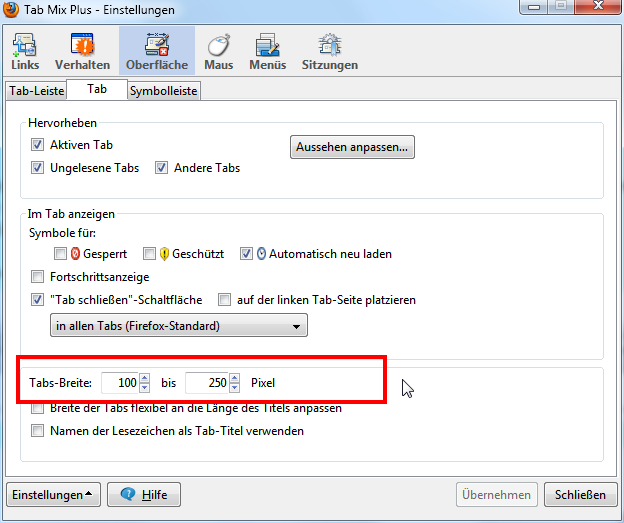 Ist der Bug bekannt oder lässt es sich per Einstell. (Mindest-Tabbreite) regeln?