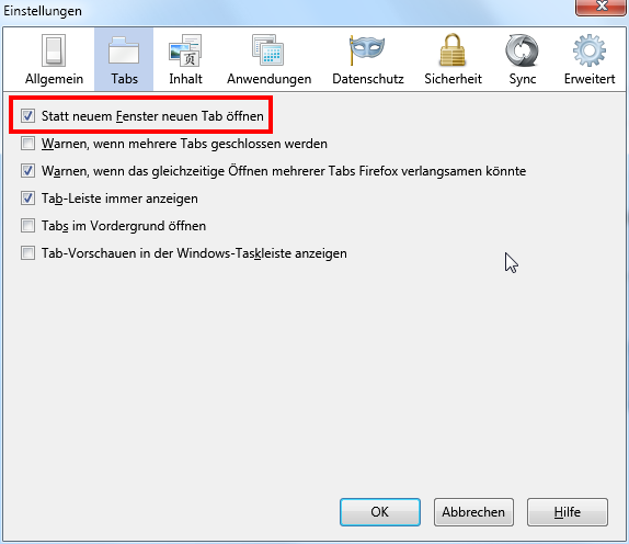 Ist das Häkchen gesetzt (Einstellungen - Tabs)?