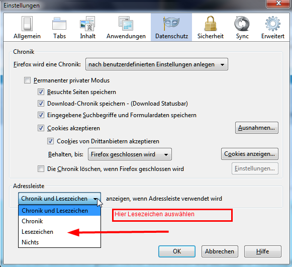wenn ich im Firefox 4 (vorher ja auch schon) in die Adresszeile etwas eingebe, werden automatisch gemäß meiner Lesezeichen und der Historie Vorschläge gemacht.