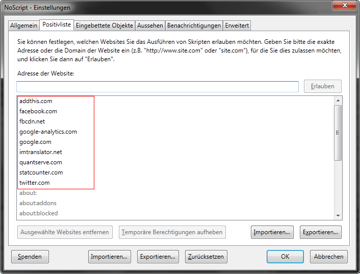 Also NoScript auf gemacht Filter translation.imtranslator.de für imTranslator eingefügt und Erlaubt-