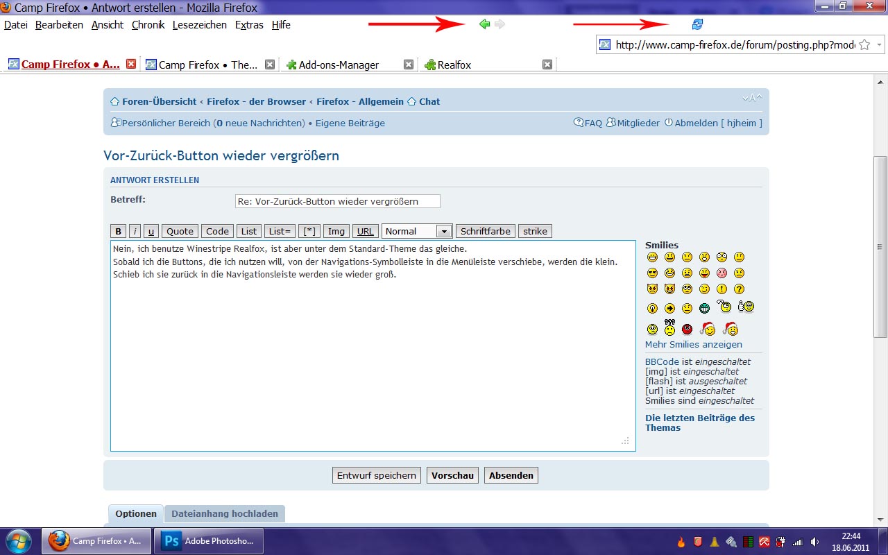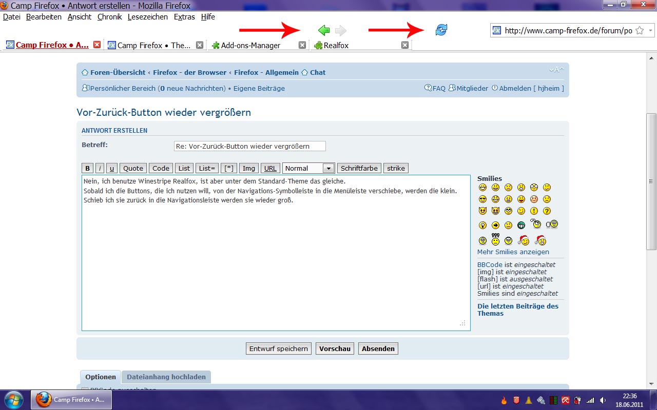 ich habe bisher immer den Vor-Zurück-Button in die Menüleiste verschoben gehabt, wobei sich die Größe der Pfeile nicht geändert hat. Seit kurzer Zeit sind die aus einem mir nicht nachvollziehbarem Grund klein und popelig.