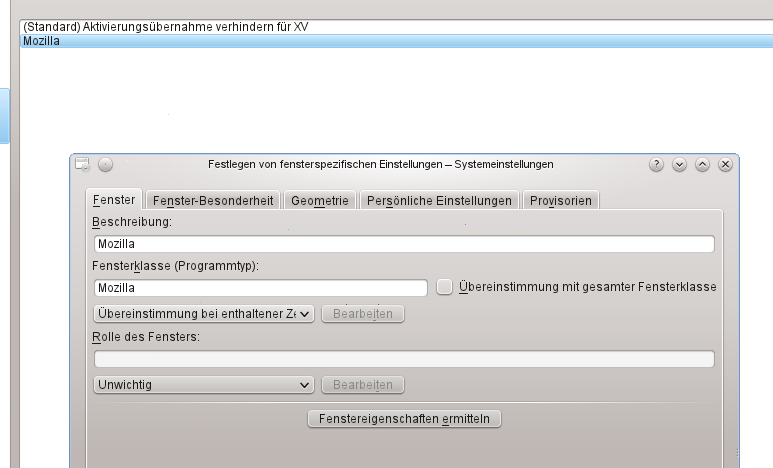 Habe natürlich versucht, das Fensterverhalten in KDE zu ändern, was mir aber nicht gelungen ist. Ist ja nicht gerade leicht, das zu durchschauen ...