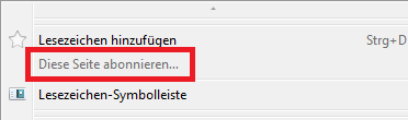 Mit "Diese Seite abonnieren…" verhält er sich Komisch nach der änderung und dem Neustart ist es wider zu sehen,wie in meinem Screen,aber wenn ich einen Link aus den Favorieten aufrufe ist es weg.