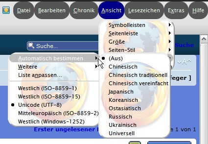 Deine Einstellungen im Firefox zur Codierung sind so, wie auf dem Bild?