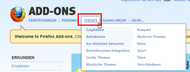 seit ein paar Tagen finde ich bei Mozilla.org keine Themes mehr (ausser Personas)