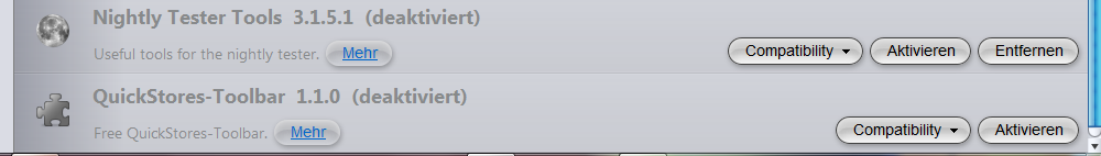 Irgendeine Software hat unter Add-Ons die Toolbar Quickstores installiert.