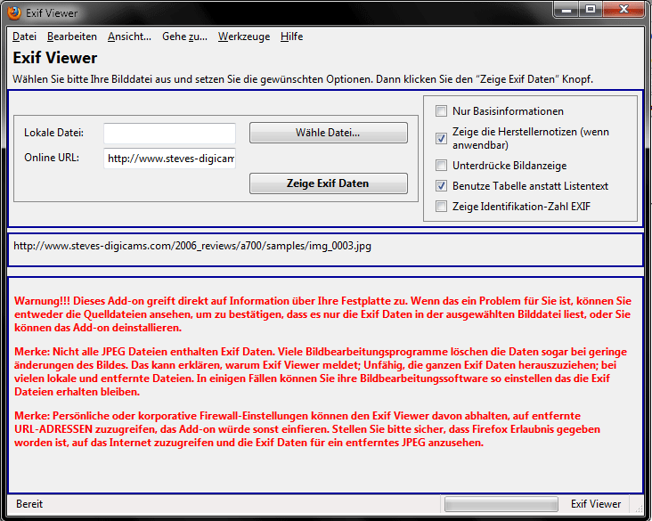 Da aber hier EXIF später nach dem Herunterladen angezeigt werden kann, hat entweder dein Firefox ne Macke,