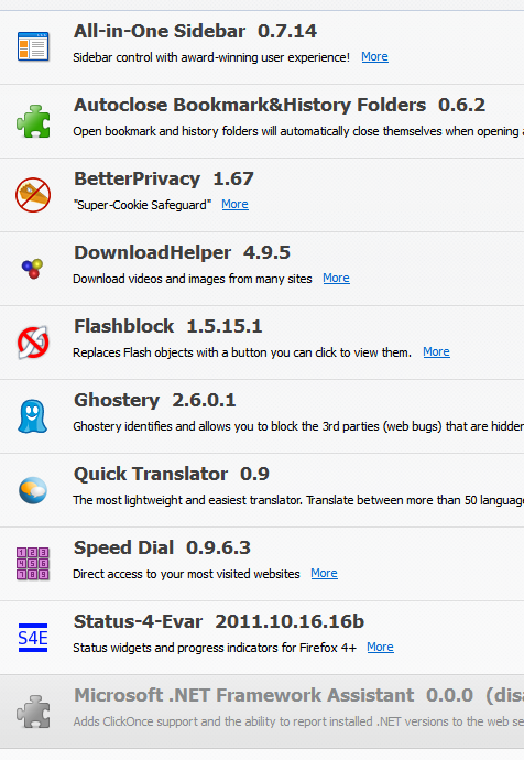 • Das Teil ist an sich superb. Gelegentlich aber bekommen ich mit 7.0.1 damit eine "Doppelleiste". kanns grad nicht schiessen, weils weg ist. Ich wüßte nicht welchem Addon ich das sonst zuschreiben kann... Es ist eine art zweite Statusleiste über den normalen und das "obere" Ding ist auch komplett leer. Nur eben hört dann die Darstellung der Seiten bei dieser Leiste :twisted: Vielleicht leigt an den "alternative borders"? Keine Ahnung. Muß ich halt weiter beobachten. 3rd part Themen benutze ich npoch keine.