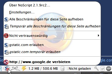 Aufgefallen ist mir, dass wenn ich in den Einstellungen bei JavaSkript einen Haken setze, die Suchanfrage auf der Google Seite sofort ausgeführt wird.