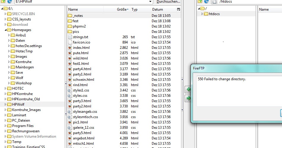Die Verbindung steht zwar aber beim Zugriff auf die Verzeichnisse des Severs kommt "550 Failed to change directory." erneut.