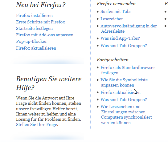 • Ich finde es schade, dass im Ursprungsbeitrag keine Links gesetzt wurden. Ich finde die Hilfeseite von Mozilla nämlich überhaupt nicht schlecht lesbar. Einen grauen Hintergrund kann ich, abgesehen von Hervorhebungen auf http://support.mozilla.org nicht sehen. Es stimmt, dass hier im Forum der dunkelblau auf hellblau geschrieben wird, allerdings ist dieser Beitrag die erste Beschwerde darüber, jedenfall an die ich mich erinnern kann.