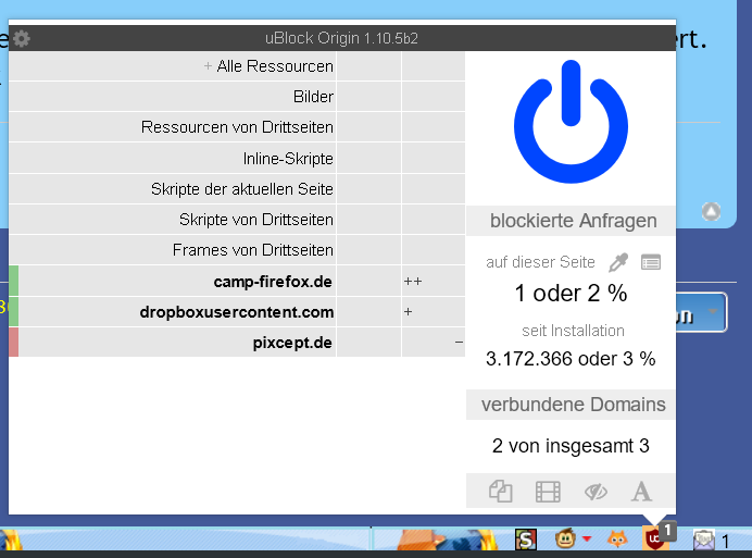 Mir fehlt jedoch irgendwie der Vorspann - nach Aufruf der Buttons "uBlock Origin" wird das gleiche Fenster wie bisher gezeigt. :-?? -