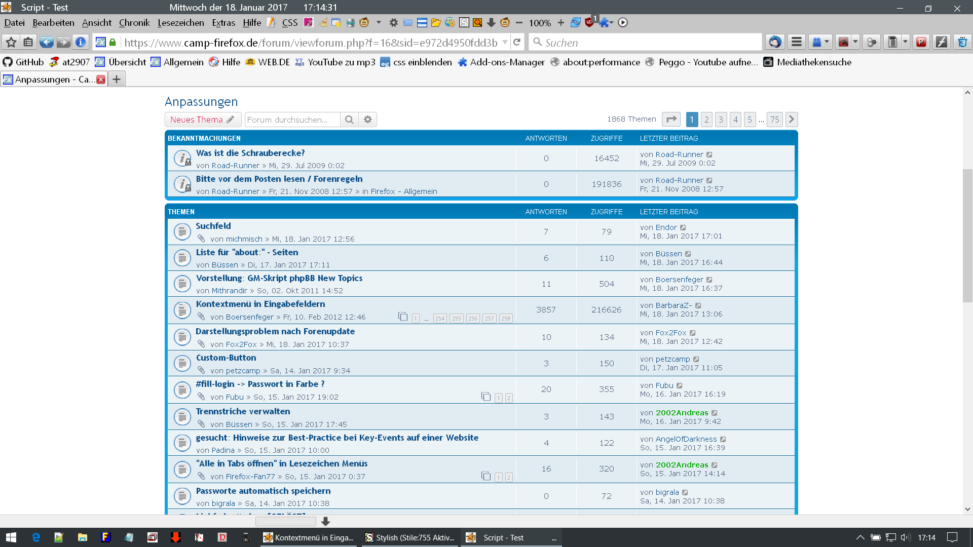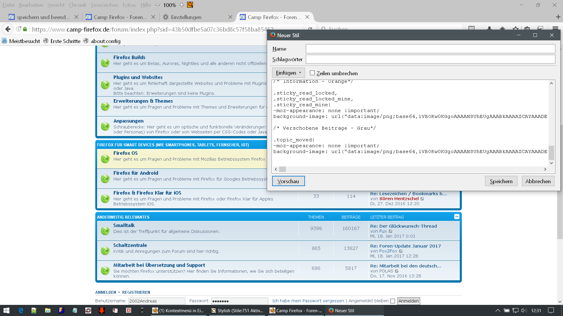 Nun habe ich allerdings das Problem, dass ich die Beschriftungen in der Menuleiste und in der Lesezeichen-Sidebar nicht mehr lesen kann, da diese schwarz sind.