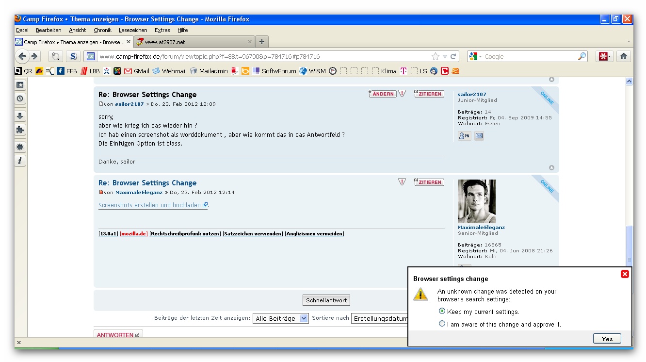 neu kriege ich ein separates kleines Fenster im Firefox