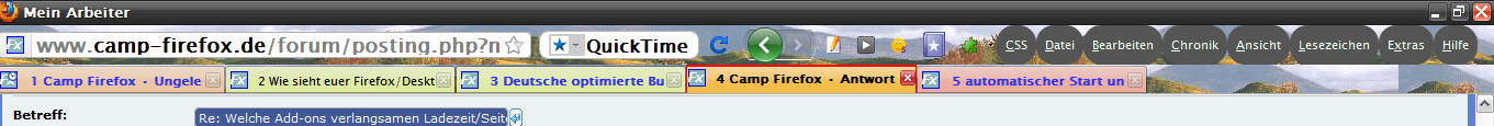 Mir geht es auch wirklich nur um die Reaktionszeit des Firefox während der Arbeit. Auch die Ladezeit des Firefox ist mir ziemlich egal, wenn die Erweiterungen mir hinterher das Arbeiten angenehmer machen.