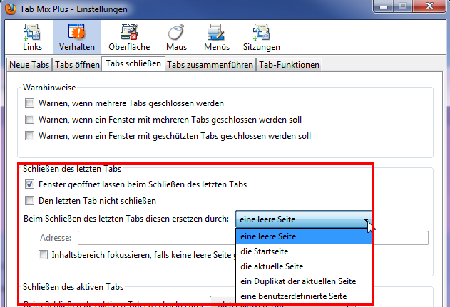 Ich benutze den Firefox schon seit vielen Jahren. Ich hatte damals eine Erweiterung, die verhindert hat, dass beim schließen des letzten Tabs der Firefox geschlossen wurde. Es erschien immer ein neuer leerer Tab, wenn man mal irrtümlich den letzten geschlossen hatte. Ich habe meinen FF so eingestellt, dass beim Schließen des FF der gesamte Verlauf gelöscht wird. Dann ist natürlich alles weg. Gibt es für den FF 11 auch so eine Erweiterung und wie heisst sie.