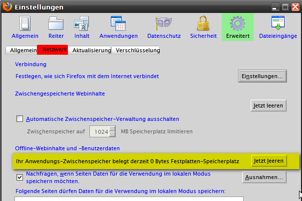 Thx, schau ich mir beides Mal an; die "manuelle" Größe steht übrigens auf 75 MB; wie groß wäre denn die vom FF verwaltete, größer oder kleiner?