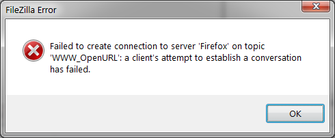 Allgemeiner Fehler. Die URL war: "http://...." Ein Fehler ist bei der Weitergabe des Befehls an die Anwendung aufgetreten.