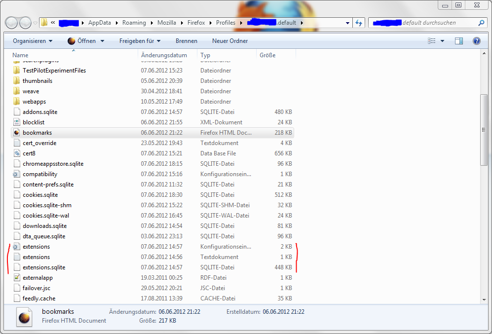 hallo, ja der ordner XXXXXXXXX.default hört sich richtig an - bitte nicht den ordner extensions darin löschen, sondern soweit vorhanden die beschriebenen dateien (siehe auch den screenshot). falls die dateien gar nicht vorhanden sind deutet das vllt auch auf ein problem mit dem profilordner hin. mach mal einen rechts-klick auf einer leeren stelle und schaue unter eigenschaften dass er nicht schreibgeschützt ist. wenn das auch nichts hilft, dann würde ich das zurücksetzen empfehlen...