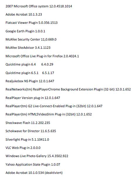 BTW: Wozu benötigt man diese ganzen Teile? Ich habe 3 installiert. 2 sind aktiv (Flashplayer und VLC-Player) und Java (standardmäßig deaktiviert)