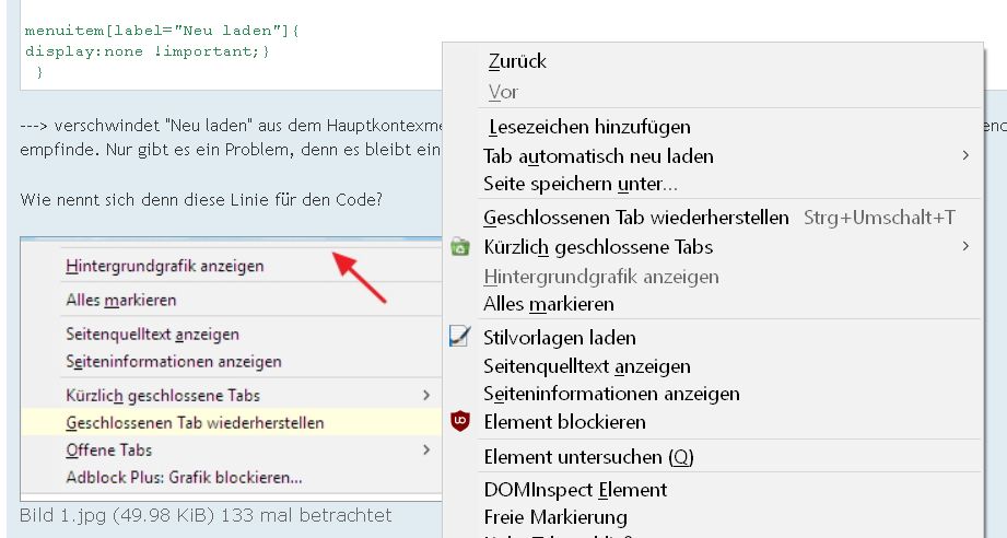Bleibt nur noch die Frage offen, warum "Neu laden" in älteren Versionen von Firefox nicht sichtbar war, denn da war "Neu laden" im Menu Editor nicht ausgeblendet. :-??