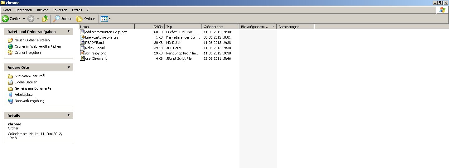 da das "Original"-Addon reliby im Ff 13 nicht mehr funktioniert, habe ich die Installationsanweisung (Kopieren der uc.xul-Datei in den Chromeordner des Profils) befolgt, aber es tut sich nichts. Muß am Script evtl. noch etwas geändert werden?