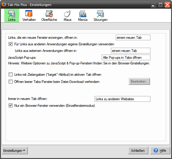 Wenn ich auf anderen (nicht angepinnten Seiten) einen Link mit der MITTLERE Maustaste anklicke, dann öffnet sich der Link in einem NEUEN Tab. Mache ich das Ganze aber in dem angepinnten Tab von FB, dann ignoriert er es. Tut so als wäre es ein linker Mausklick und öffnet es im selben Tab (selbst, wenn es die die Domain des Tabs ändert).